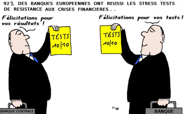 La presse est unanime. Les stress tests ont été un véritable succès. Sur les 91 établissements audités par les régulateurs européens, seuls sept auraient besoin d'une recapitalisation si une nouvelle crise économique venait à poindre son nez. Pourtant, ces tests n'ont aucune valeur. Explications.